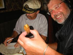 „Her damit“, rufe ich dem Barkeeper zu. „Und hinterher gleich noch einen Extraschnaps, um den Ekel wegzuspülen.“ Der Barbesitzer setzt sich die Kapitänsmütze auf, die angeblich schon Dick Stevenson getragen haben soll. Dann greift er mit Mittelfinger und Daumen in den Marmeladetopf, holt vorsichtig, aber nicht sehr angeekelt die gelblich-bräunliche Zehe heraus und lässt sie in ein leeres Glas fallen. Ein Schuss Whisky drüber – und es kann losgehen. „Schluckweise oder ex?“, will der Barkeeper wissen. Ich entscheide mich für den schnellen Tod.