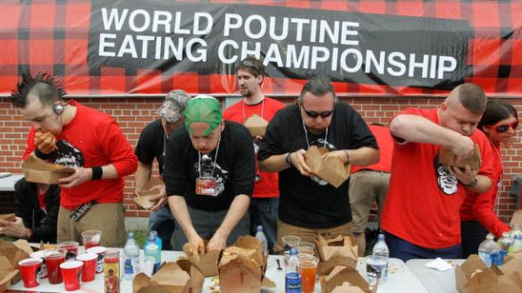 Zum Leidwesen der Québecker wird Poutine längst auch in anderen Teilen des Landes und sogar in den USA serviert. Und, schlimmer geht nimmer: Ausgerechnet in den USA fand vor zwei Jahren die erste Weltmeisterschaft im Poutinefressen statt. Sieger wurde ein gewisser Pat „Deep Dish“ Bertoletti aus Chicago. Er verdrückte in der kürzesten Zeit 5.8 Kilo Poutine. Dafür gab’s eine Trophäe und 750 Dollar.