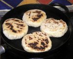 Bei uns im Blog-Haus gibt es Bannock, das in der Pfanne gebacken wird. Ich kenne Indianer, die das Brot an einem Holzstock backen und es wie eine Grillwurst so lange überm offenen Feuer bewegen, bis es knusprig-braun ist. Diese Variante setzt allerdings voraus, dass die Konsistenz des Teiges stimmt. Ist er zu wässrig, löst er sich vom Stock und landet im Feuer.
