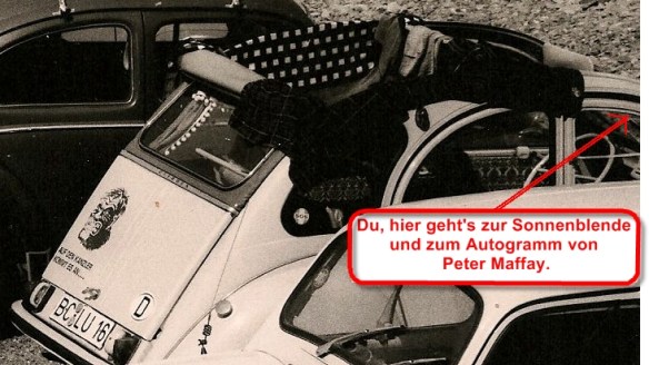 Eben habe ich mir im Internet die letzte „hart aber fair”-Sendung angesehen. Klasse. Einer der Gäste war Peter Maffay. Ein großer, kleiner Mann. 168 Zentimeter Power. Ich habe Peter Maffay 1972 getroffen. Als Lokalreporter für die Waiblinger Kreiszeitung. In meiner Stammdisco hatte er eine Autogrammstunde gegeben. Anschließend fuhr ich ihn mit meinem 2CV zum Interview in die Redaktion. Während der Fahrt im Döschwo schrieb er mit einem Filzstift auf die Sonnenblende: „Danke, Du! Peter Maffay”.