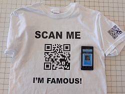 Die Bedienung ist einfach. Zunächst lädt man sich eine Strichcodeleser-App auf sein Smartphone. Davon gibt es im Internet jede Menge. Sieht man dann irgendwann so einen QR-Code in einer Zeitungsanzeige, auf einer Plakatwand oder auch auf einem hübschen T-Shirt, das da an einem vorbeirauscht, hält man einfach den Handy-Scanner drauf – so, als würde man das Logo abfotografieren. Tut man ja genau genommen auch. Nur nicht mit der eingebauten Handy-Kamera, sondern mit dem Barcode-Leser.