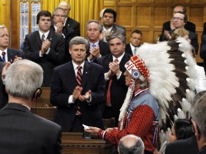 Kurz vor Ende seiner Amtszeit schaffte der damalige Premierminister Paul Martin etwas, das bis dato keine kanadische Regierung fertiggebracht hatte. Er machte 5 Milliarden Dollar für ein Hilfsprogramm locker, das die Zustände in den Reservaten drastisch verbessert hätte. Schulen, Krankenhäuser, Sozialstationen. Alle Parteien im kanadischen Parlament waren dafür. Auch die Konservativen unter Stephen Harper. Es waren Lippenbekenntnisse. Kaum war Paul Martins Minderheitsregierung gefallen und Stephen Harper der Chef im Parlament, wollte dieser von der noblen Initiative seines Vorgängers nichts mehr wissen. Die „Kelowna-Vereinbarung“ ist nie umgesetzt worden. Blockiert hat sie Stephen Harper. Der Mann, der sich lieber mit Teersand-Produzenten fotografieren lässt als mit Tipi-Bewohnern.