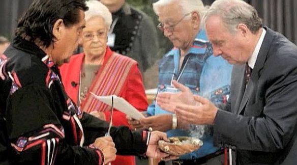 Paul Martin ist der Mann rechts im Bild. Er trägt das Herz am richtigen Fleck. Als ehemaliger Premierminister Kanadas setzt er sich nicht in den Ohrensessel und lässt den lieben Gott einen guten Mann sein. Er kümmert sich, ruhig und hinter den Kulissen, um das Schicksal kanadischer Ureinwohner. Der jetzige Regierungschef Stephen Harper könnte sich an seinem Vorgänger ein Beispiel nehmen. Unter der Führung der Konservativen geht es vielen Indianern schlechter als je zuvor.