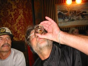 Meine Urkunde trägt das Datum vom 7. September 2004. An diesem Tag, übrigens dem 65. Geburtstag meiner Schwester Irmtraud, führt mich der Weg in die „River Rat Bar“ in Dawson. Es ist ein regnerischer Abend, die bissige Luft riecht nach frühem Winter. Der unbefestigte Schotterweg, der durch den 1200-Einwohner-Ort Dawson City führt, ist aufgeweicht. Die Bar ist brechend voll. Auf einer kleinen Holzbühne in der Ecke spielt eine Country & Western- Band. Auf dem Tresen steht ein großes Glas mit eingelegten Eiern, daneben ein Fass mit sauren Rollmöpsen. Um mich herum gut gelaunte Menschen: Einheimische, ausgelassene Touristen und ein paar kreischende Frauen, die sich allein schon beim Anblick des berühmten Marmeladeglases ekeln.