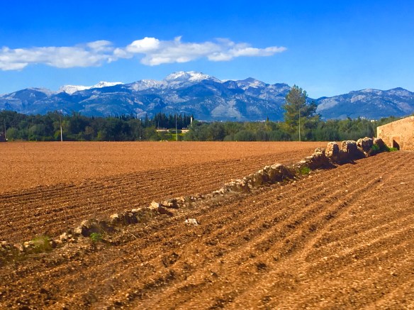 Verdrehte Welt: Die Schafe, die vorhin noch zur Linken waren, sind jetzt plötzlich zur Rechten. Der Schnee auf den Gipfeln der Tramuntana ist im Laufe unserer Reise durch Mallorca sichtlich zusammengeschmolzen.