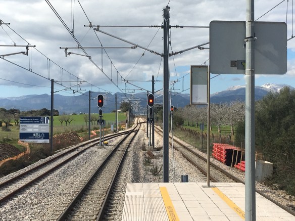 Nach dem Zug ist vor dem Zug. Jetzt geht es auf der ältesten Schienenstrecke Mallorcas (seit 1875) zwangsweise zurück nach Inca, nicht ohne einen notwendigen Umsteigehalt in einer Bahnstation im Nirgendwo einzulegen, deren Namen man nicht kennen muss.