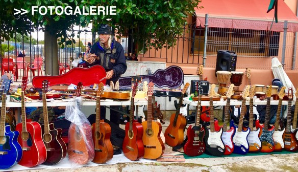 Rob verkauft keinen Ramsch. Es sind gut gebaute Gitarren, die er einmal in der Woche in seinem Vitara von Valdemossa nach Consell schippert. Bei Valdemossa, dort wo das Tramuntanagebirge das Meer küsst, lebt der liebenswerte Engländer auf einer kleinen Finca. Manchmal mit Partnerin („Anwältin aus Paris“), oft allein oder mit Freunden. Auf dem Flohmarkt in Consell verdient er sein Geld. Oder auch nicht.
