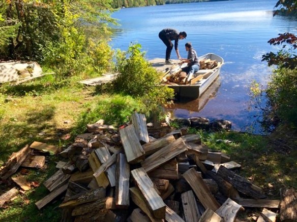 das der Holzhändler zuvor am Ufer abgeladen hatte. Das Feuerholz, das uns während des kommenden Winters einheizen soll, muss per Ruderboot über den See zum Haus geschippert werden. Eine Autozufahrt gibt es nicht.