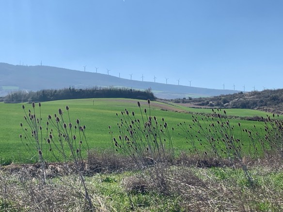 Und, ja: Genau durch jenen Windpark sind wir marschiert, den wir vorgestern noch auf dem Flug von Lissabon nach Bilbao von der Luft aus bestaunt hatten.