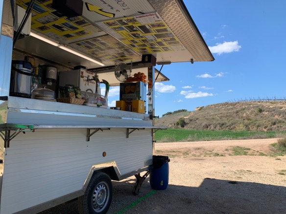 Und immer wieder ist der Camino für Überraschungen gut. Sei es eine hippe Bar, die ein cooler Typ buchstäblich im Nirgendwo im Wohnwagen aufgebaut hat und alles serviert, was das Pilgerherz begehrt.