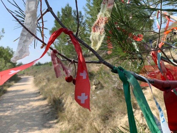Manchmal sind die einfachsten Antworten die besten. Unter einer schattigen Steineiche treffen wir Yvonne, eine nicht mehr junge und auch nicht mehr ganz schlanke Pilgerin aus Alaska. Sie hat den Weg um die halbe Welt ganz alleine angetreten. Was sie hierher bringe, frage ich sie. Ihre Antwort: „Der Camino“.