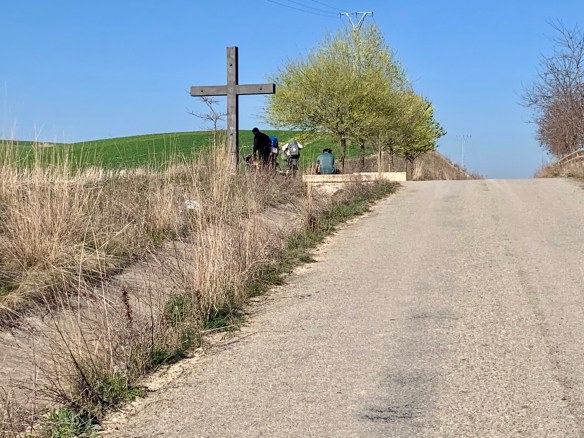 Menschen, die uns auch heute wieder auf dem Camino begegnet sind. Wo fange ich an? Bei Ellie aus Wales, die zusammen mit James aus Los Angeles, Jonas aus der Pfalz, Linda aus Vancouver Island und Andrew aus Melbourne die Morgensonne vor einer Bar genießen.