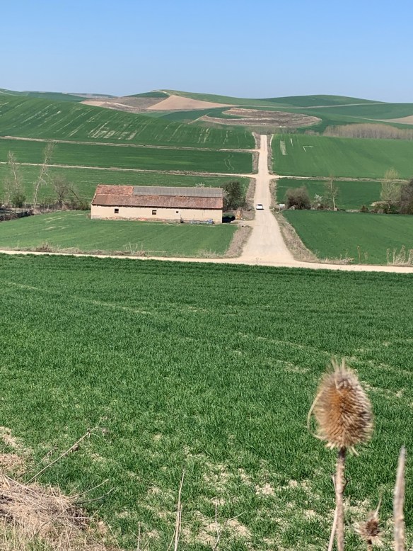Die Landschaft hat sich drastisch verändert. Von den fruchtbaren Feldern, Weinbergen und Wiesen, die uns noch bis gestern als Augenschmaus dienten, war heute nicht mehr viel übrig. Stattdessen erinnerten uns hauptsächlich Kartoffelfelder daran, dass auch entlang des Caminos kein Manna vom Himmel fällt, sondern die Natur die Menschen ernähren muss.