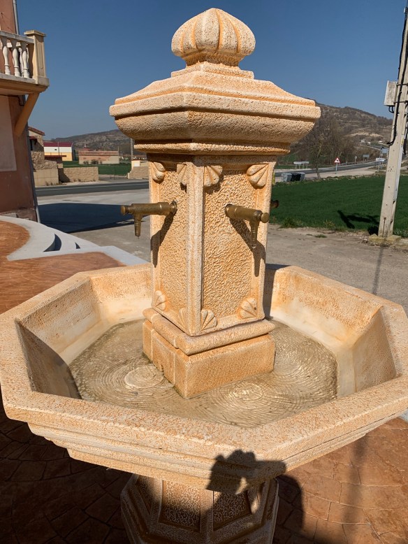 Wo wollt ihr hin? Wo kommt ihr her? Was, schon mehr als 200 Kilometer seid ihr zu Fuß gelaufen? Trinkgeld? Kommt nicht in die Tüte. Spar dein Geld, Pilger! Du wirst es noch gebrauchen können. Holt euch frisches Trinkwasser, gleich um die Ecke steht der Dorfbrunnen. Und überhaupt, hier ist ein Geheimtipp: Wenn ihr nach der Brücke links abbiegt und nicht geradeaus weiter marschiert, spart ihr gut und gerne einen Kilometer.