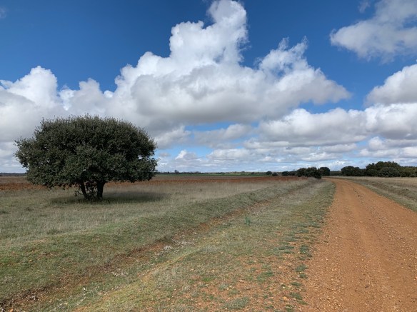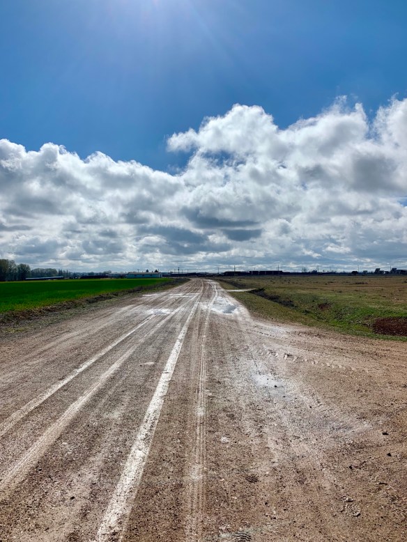 Als 24jähriger Jungspund habe ich insgesamt fünf Jahre in der westkanadischen Prärieprovinz Manitoba gelebt. Was mir bis heute in Erinnerung geblieben ist, sind die unendlich scheinende Weite und der unverstellte Blick bis zum Horizont. Heute gab es auf der 18 Kilometer langen Strecke von Sahagún nach Calzadilla de los Hermanillos eine Art Déjà-Vue mit Manitoba.