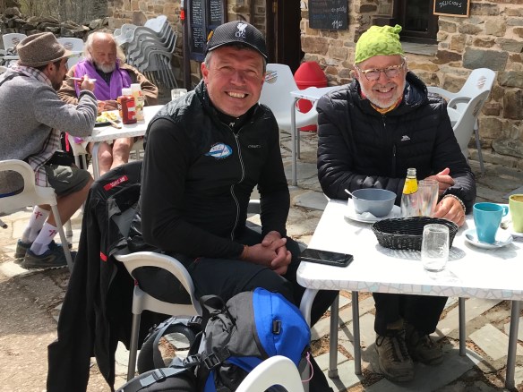 Der Blick durchs Herbergsfenster hinüber auf die schneebedeckten Berge und auch, je nach Perspektive, ins Tal, erfüllt mich wieder einmal mit großer Dankbarkeit. Dass diese Tour auch für einen Siebzigjährigen zu schaffen ist, war nicht ganz selbstverständlich. So viel zum Thema Grenzen ausloten.