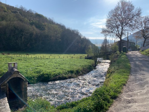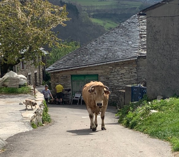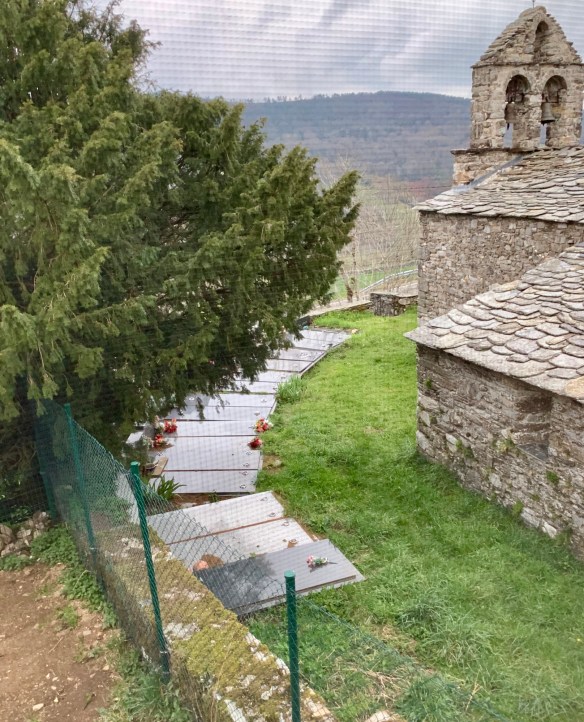 So schliefen wir gestern mit Blick auf eine Kuhwiese. Das Herbergszimmer, das uns eben zugewiesen wurde, erlaubt uns einen unverbauten Blick auf den Friedhof des Bergdorfs Fonfría.
