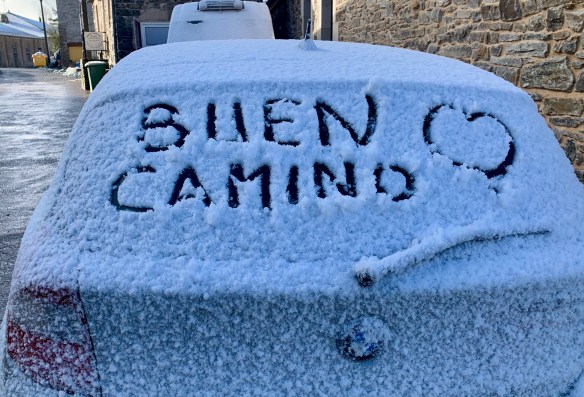 Sind wir ja auch zurzeit. Aber der Camino ist auch so etwas wie Heimat für uns geworden. Neue Heimat. Schöne Heimat. Manchmal kalte, manchmal heiße Heimat. Heute nasse Heimat.