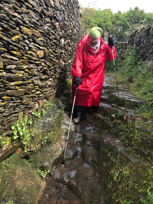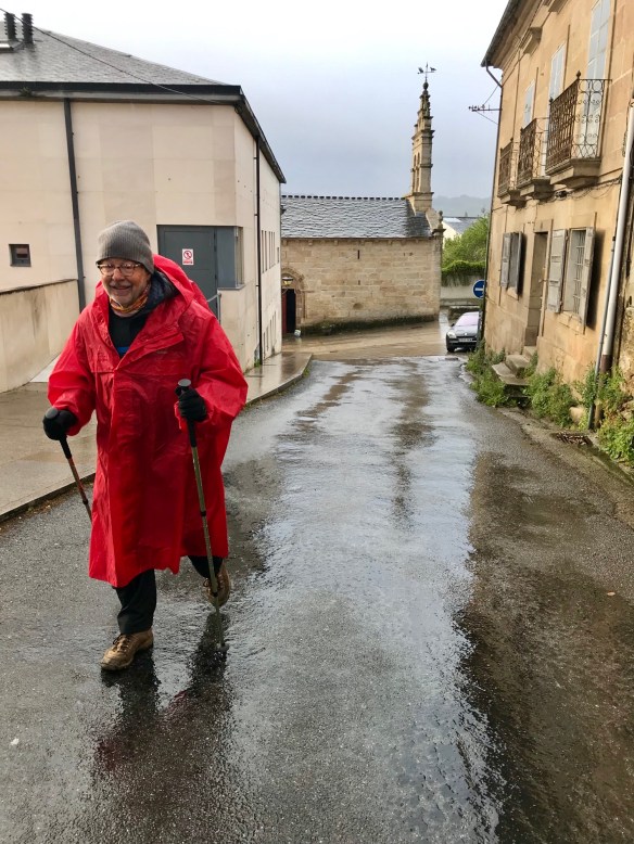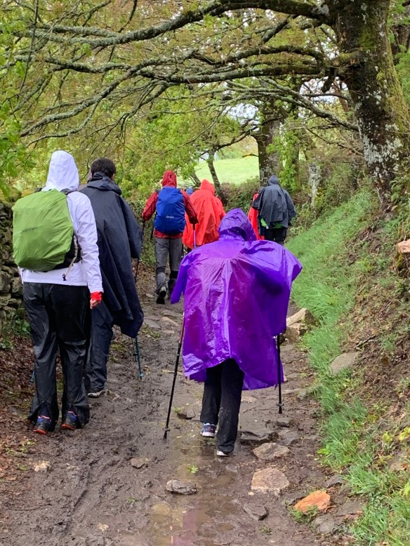 Wir haben’s doch nicht getan. Das Pilgergewissen hat uns keine Ruhe gelassen. Deshalb sind wir heute früh nicht etwa mit dem Bus von Sarria nach Portomarin gefahren, sondern im strömenden Regen losgewandert.