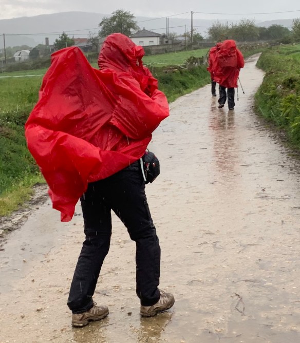 Dearest Pilgrims, You are giving the Camino your all! Clearly, you are determined to accomplish it to the very end without a day off or a bus ride. Sending you warmest wishes for your continued safety & health with Buen Camino vibes in abundance!💕 (Some sun would help, too!🌞)