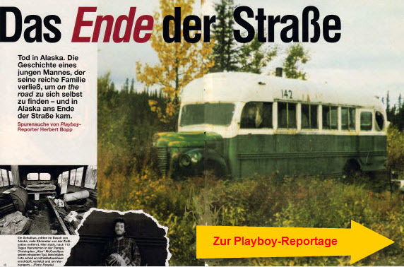 Dann passierte etwas Überraschendes: Ein Redakteur des Männermagazins „Playboy“ rief bei mir an. Er hatte den Beitrag auf (damals) SWF3 gehört. Der Kollege meinte, die Story enthalte sämtliche Elemente, die Playboy-Leser ansprechen: Abenteuer, Freiheit, Reisen. Und, wie sich später herausstellte, auch Frauen. Denn Christopher McCandless, der sich „Alex“ nannte, war ein Schwerenöter, den die Frauen liebten. Ob ich Lust hätte, fragte der Kollege aus München, für den Playboy zu recherchieren, wie aus dem Sohn einer wohlhabenden amerikanischen Familie ein Aussteiger geworden ist, der in Alaska, in the middle of nowhere, elendig zu Tode gekommen war.