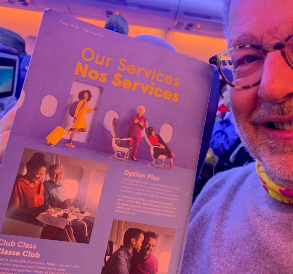 Doof: Meine kleine Karriere als Seniorenmodel für AirTransat bemerkte außer Lore und mir wohl niemand im Flieger. Aber immerhin: Einmal im Leben Posterboy gewesen!