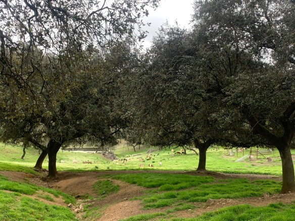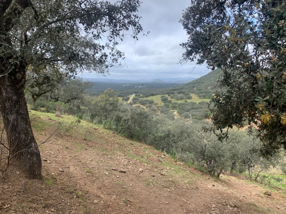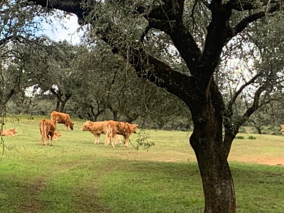 Schön ist es schon, keine Frage: Steineichenwälder so weit das Auge reicht. Lavendel und Felsrosen. Und Margeriten ohne Ende. Hier mal ein schwarzes Iberico-Schwein, das später zu Schinken verarbeitet wird. Da mal eine Kuhherde oder auch Schafe, Ziegen und Pferde. Bellende Hunde, streunende Katzen.