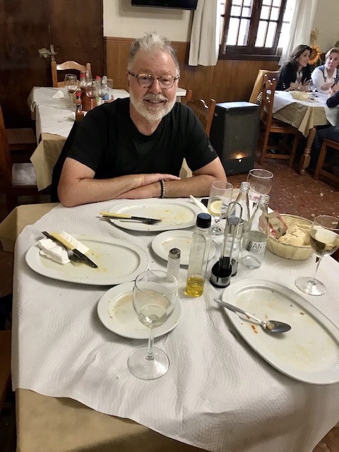 Wir haben gut gegessen und getrunken. . Im Pilgerteller blieb kein Reiskorn übrig. Der Kellner strahlt.