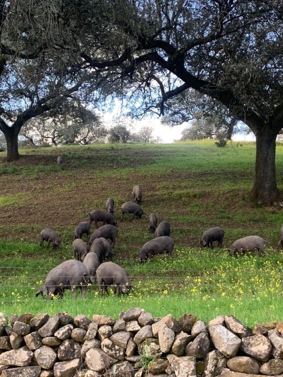 Wir haben Andalusien heute hinter uns gelassen und befinden uns jetzt in der Provinz Extremadura. Dieser südspanische Landstrich ist für seine schwarzen Iberico-Schweine bekannt, die den angeblich besten, aber auch teuersten Schinken abgeben.