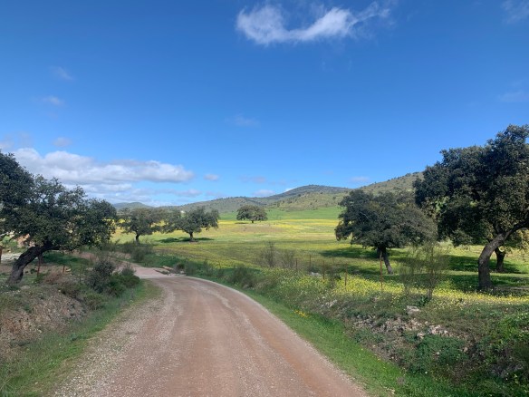 Das lag zum einen an der Landschaft, die jetzt eine Spur lieblicher und abwechslungsreicher daher kommt als bisher. Aber auch an der Sonne, die uns den ganzen Tag über begleitete und die Extremadura in ein wunderschönes Licht tauchte.