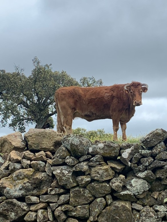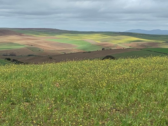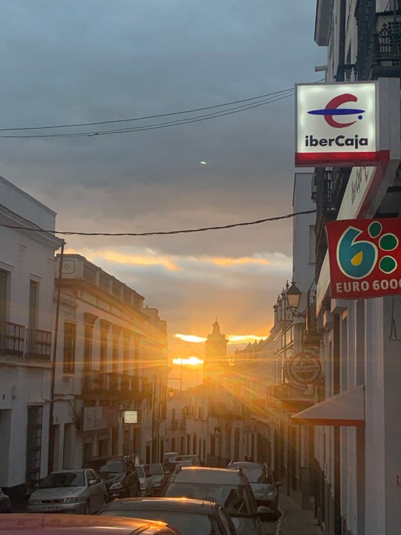 Das Dorf Fuente de Cantos, Ziel unserer heutigen Etappe, spielte den ganzenTag Katz und Maus mit uns. Mal präsentierten sich die weißen – und bei Sonnenschein sicher sehr hübschen – Dorfhäuser als zum Greifen nahe. Dann verschwanden sie wieder am Horizont und schienen für eine Tagesstrecke fast unerreichbar.