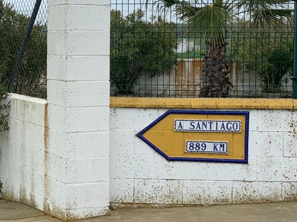 Regen und Wind, gut und schön. Aber gibt’s hier vielleicht irgendwo eine Kneipe, in der man sich zwischendurch aufwärmen könnte? Oder einen anderen Pilger, mit dem man sich austauschen könnte?