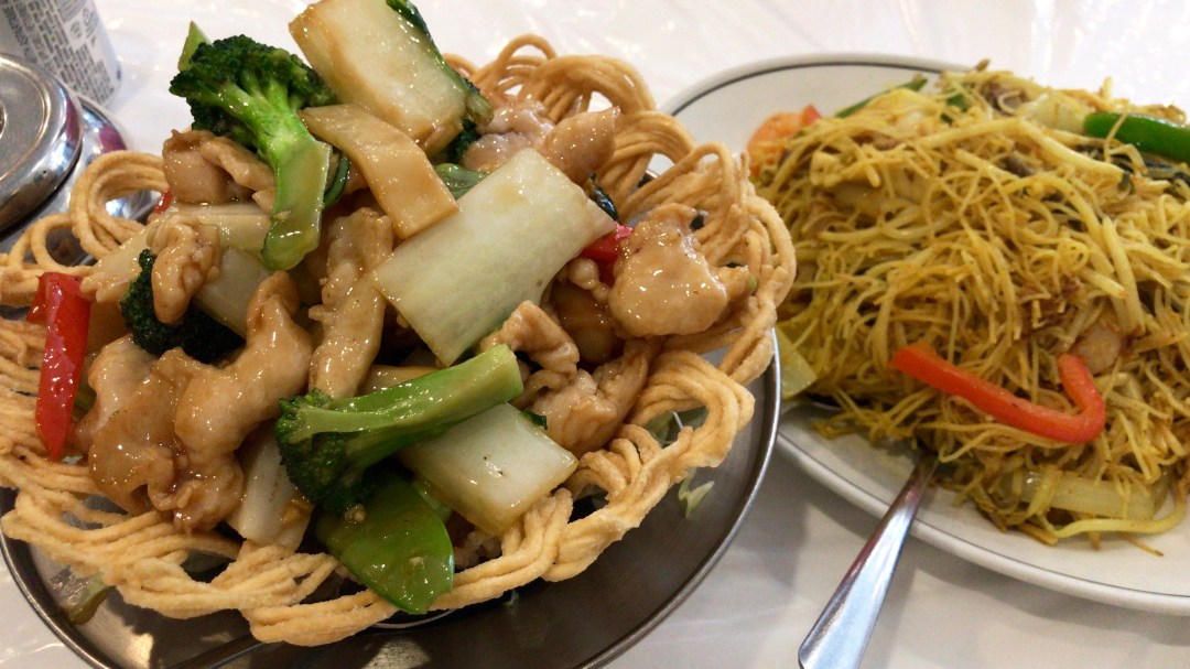 Die frisch laminierte Speisekarte hat sich seit unserem letzten Besuch vor mehr als einem Jahr nicht verändert. Unser Geschmack auch nicht: „Birds Nest“ mit Huhn, Gemüste und Shrimps für die Dame. Singapur-Nudeln für den Herrn. Himmlisch!