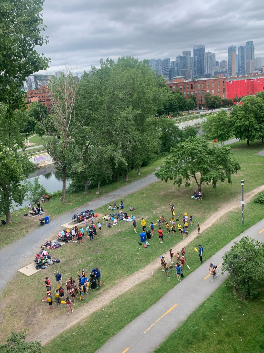Direkt unter uns gibt es einen Bootsverleih. Tretboote, die aussehen wie putzige Schwäne. Weisse Boote mit Elektromotor, die vielleicht gerne erwachsen wären und als Yachten übers Mittelmeer segeln würden. Kajaks, Kanus, Familienboote – so ziemlich alles, was schwimmt, ist hier halbstundenweise zu mieten. Manche Leute tun sich schwer, ins Boot zu kommen. Andere wiederum haben Probleme beim Aussteigen. Geschmeidigkeit ist eine Körpertechnik, die manche mehr, manche weniger beherrschen.