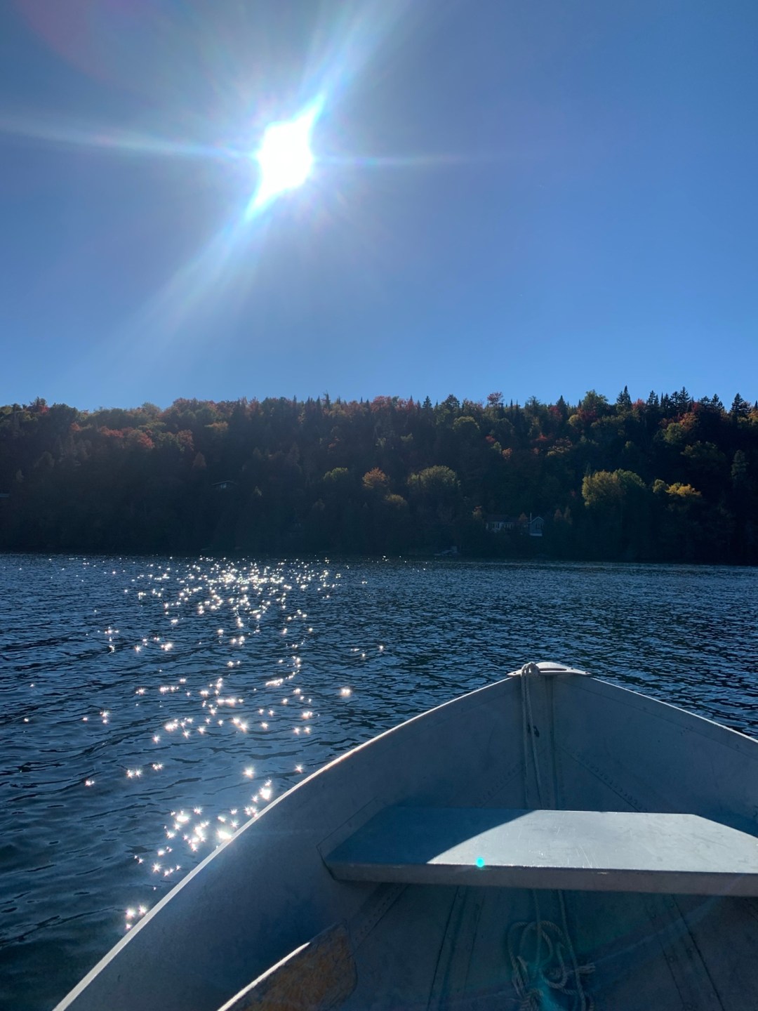 Zweimal sind wir während dieser Woche mit dem Boot über den See geschippert. Einmal, um mit dem Auto für Lebensmittel- und Getränkenachschub im 16 Kilometer entfernten Ste. Agathe zu sorgen.