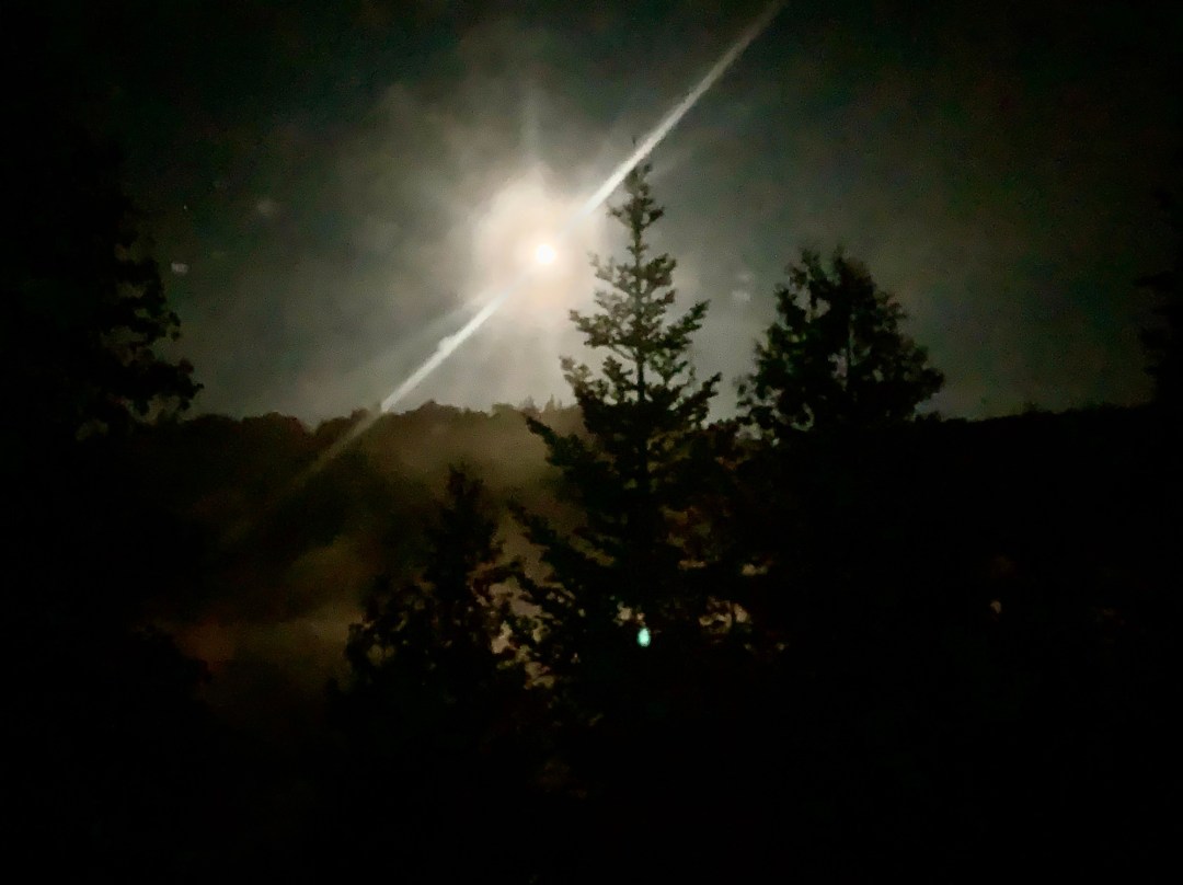 Huch – was war das denn? Morgens kurz nach drei schon ein Scheinwerferkegel im Gesicht? Keine Panik: Es ist nur der Mond, der zur Unzeit sein gleißendes Licht über dem Lac Dufresne erstrahlen lässt.