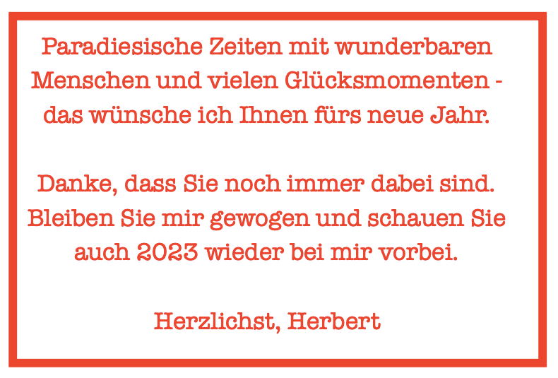 auch Euch einen schönen Jahresstart und ein wundervolles Jahr 2023 mit vielen neuen und nur positiven Perspektiven und Geschichten wünscht herzlich,