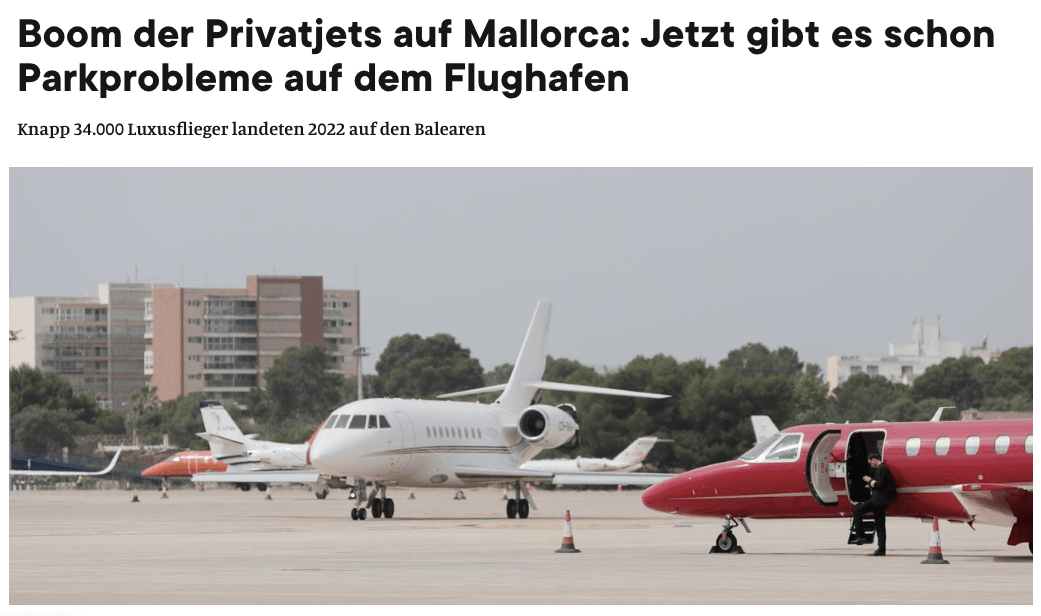 Diese Sorgen haben die Besitzer der 38 Privat-Jets vermutlich nicht, die jeden Tag allein auf dem Flughafen von Palma de Mallorca starten und landen.