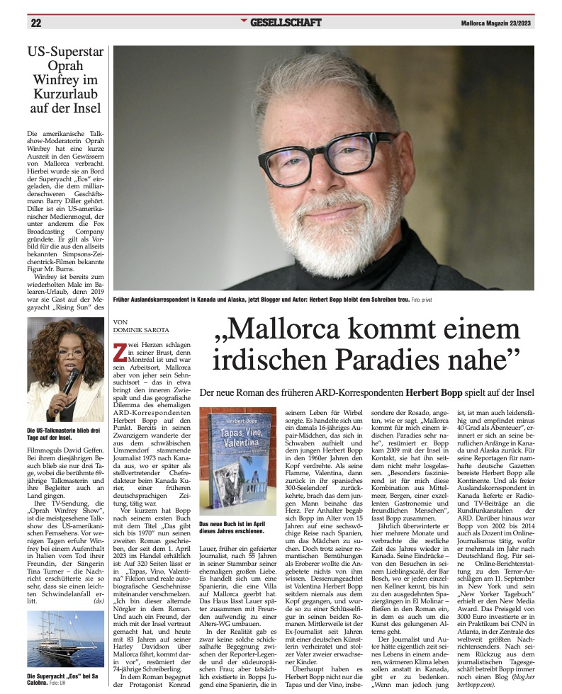 Die Liebe zu Mallorca bleibt Veröffentlicht am 2. Juni 2023 von Herbert Bopp Ein Artikel im „Mallorca Magazin“ von DOMINIK SAROTA Und hier noch als PDF zum Vergrößern: hbopp-1Download MM-Autor Dominik Sarota (r) beim Skype-Interview. Entdecke mehr von BLOGHAUSGESCHICHTEN Melde dich für ein Abonnement an, um die neuesten Beiträge per E-Mail zu erhalten. Gib deine E-Mail-Adresse ein ... Abonnieren Teilen mit: Klicke, um auf X zu teilen (Wird in neuem Fenster geöffnet) X Klick, um auf Facebook zu teilen (Wird in neuem Fenster geöffnet) Facebook Klicken, um einem Freund einen Link per E-Mail zu senden (Wird in neuem Fenster geöffnet) E-Mail Klicken zum Ausdrucken (Wird in neuem Fenster geöffnet) Drucken Gefällt mir Wird geladen …