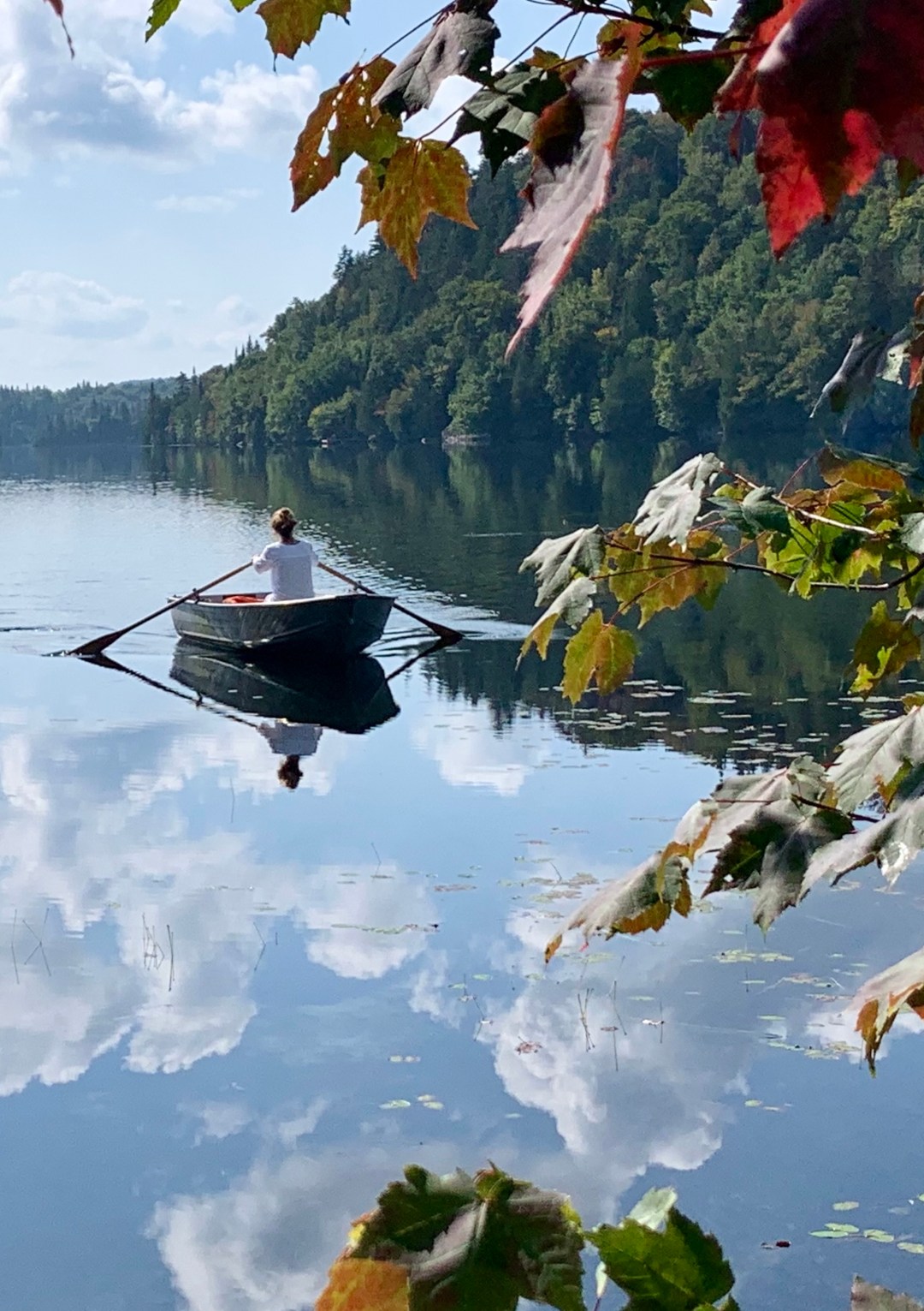 Vorbei sind die Zeiten, da der erfahrene Camino-Wanderer zu Fuß über einen steilen Waldpfad zur Cottage gelangt. Jetzt holt mich die Kapitänin meines Herzens mit dem Ruderboot am Seeufer ab und schippert uns gemeinsam zum Ziel. Aus- und Einstieg sind nach einer kurzen Zitterpartie zu schaffen.