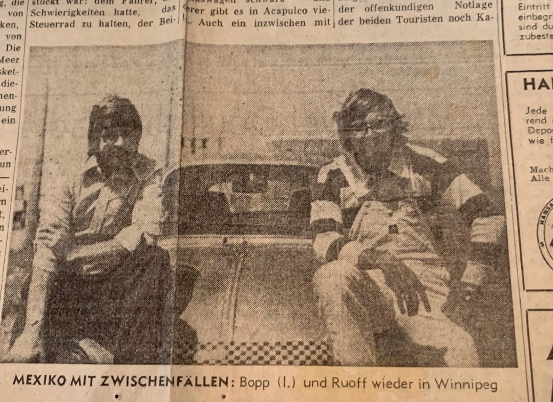 Der Blogger und ein Footballprofi 1976 in Mexiko: Rechts: Der „kanadische Beckenbauer“ Bernie Ruoff. Der Zeitungsartikel erschien nach unserer Rückkehr aus Mexiko. In Acapulco war Bernies nagelneuer VW übrigens später gestohlen worden.