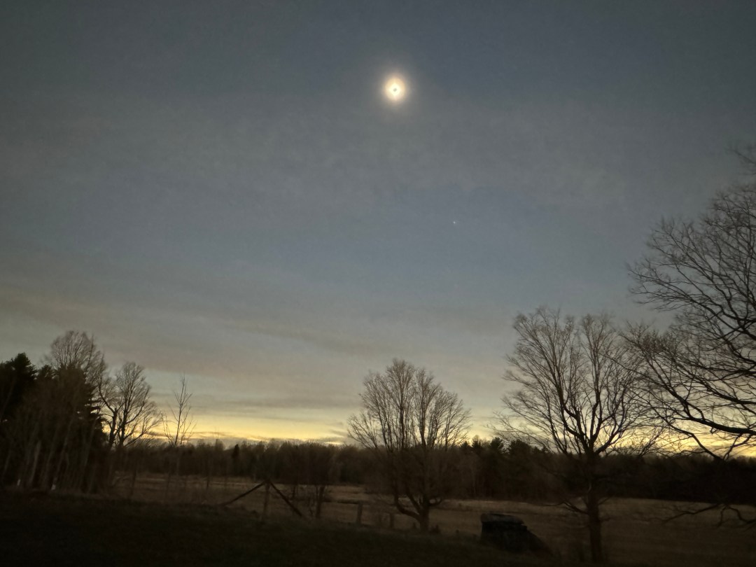Anders als in der Millionenstadt Montreal, wo sich Hunnderttausende zu Sonnenfinsternis-Partys auf der Île Sainte-Hélène und zahlreichen anderen Parks getroffen haben, ging es auf Cassians Farm beschaulich zu.