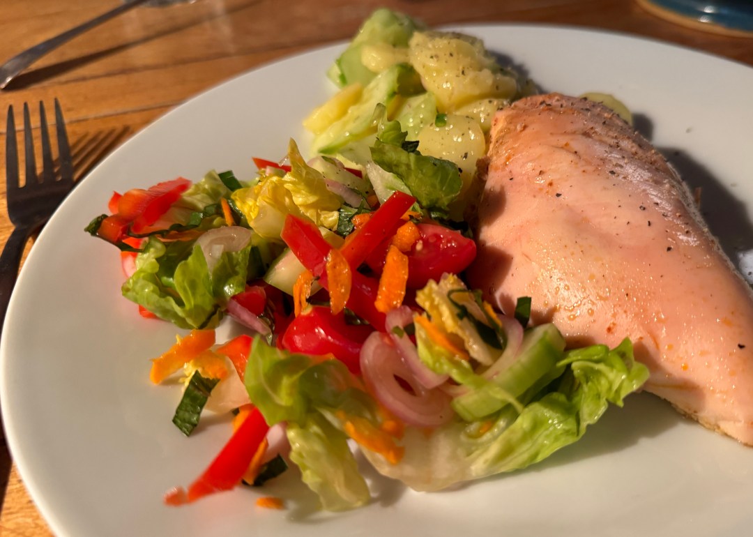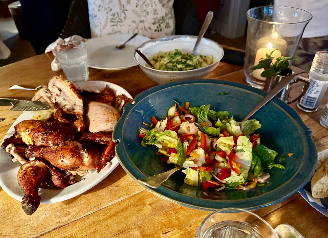 Ländlich-sittlich: E-Bike statt UberLeo und MaxKunst am Bauernhof: Zementiertes Rhabarber-BlattHübsch, der kleine Stinker: Nordamerikanisches Stinktier („Skunk“)Seltener Besucher: „Rose-breasted grosbeak“ („Rosenbrustkernknacker“)Fettfrei: Hühnerbrust ohne Haut, aber mit leckeren Salaten.