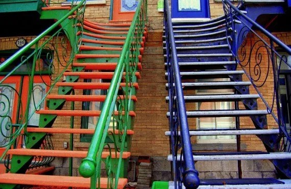 Treppen gehören zu Montreal wie Winter, Smoked Meat und der Sprachenstreit. Dabei ist hier nicht von Treppenhäusern die Rede, sondern von Treppen, die an die Außenwände von Mehrfamlienäusern angebaut sind und direkt zum Wohnungseingang führen.