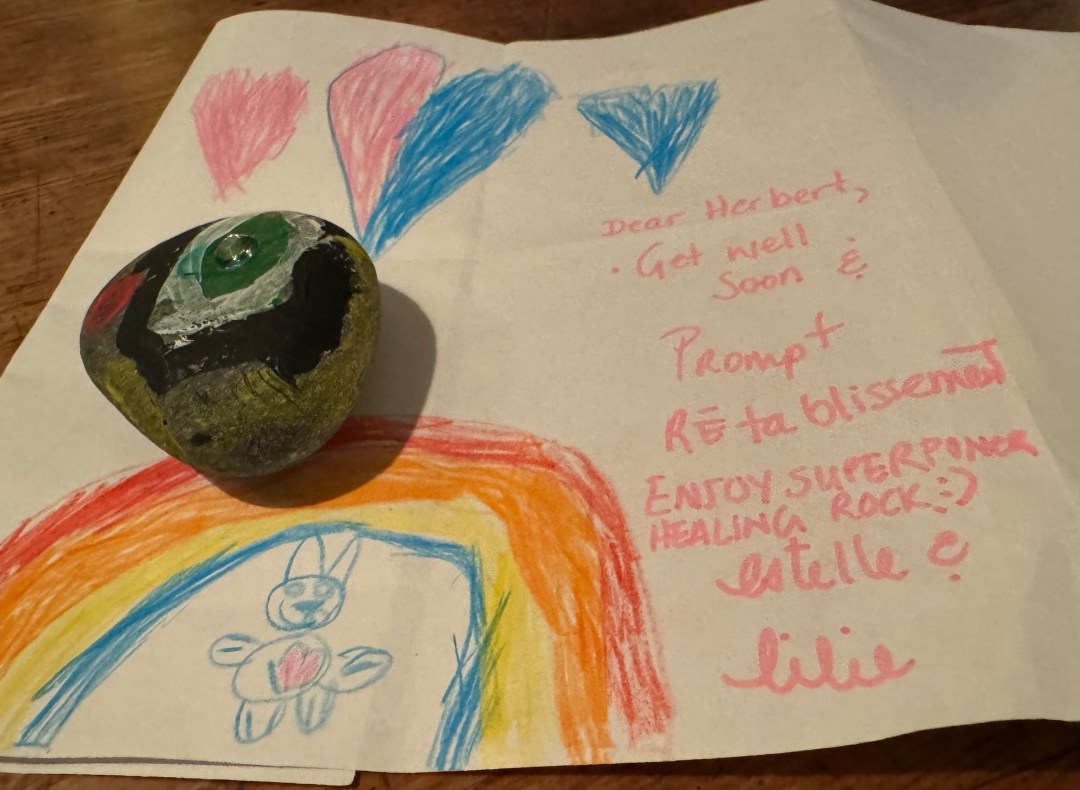 GESUNDHEIT: Lilie legt einen Glücksstein vor die Tür.