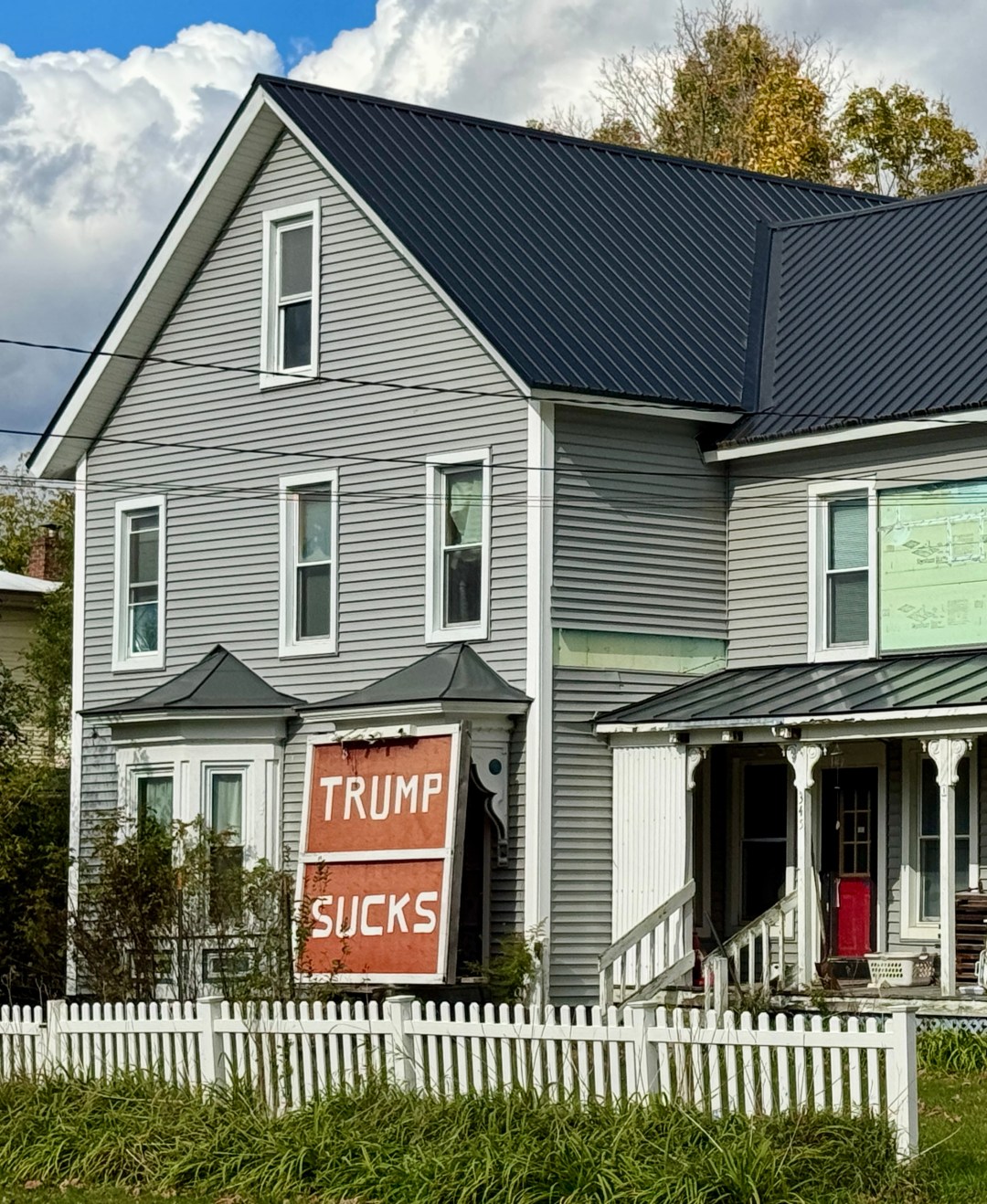 Und natürlich spielt auch immer Politik eine Rolle, wenn von den USA die Rede ist. Das „Fuck Trump“-Plakat hatte übrigens jemand aufgehängt, der genau gegenüber einem Trump-Anhänger lebt. Dort – nicht im Bild festgehalten – hatte jemand Plakate für Trump/Vance angebracht.