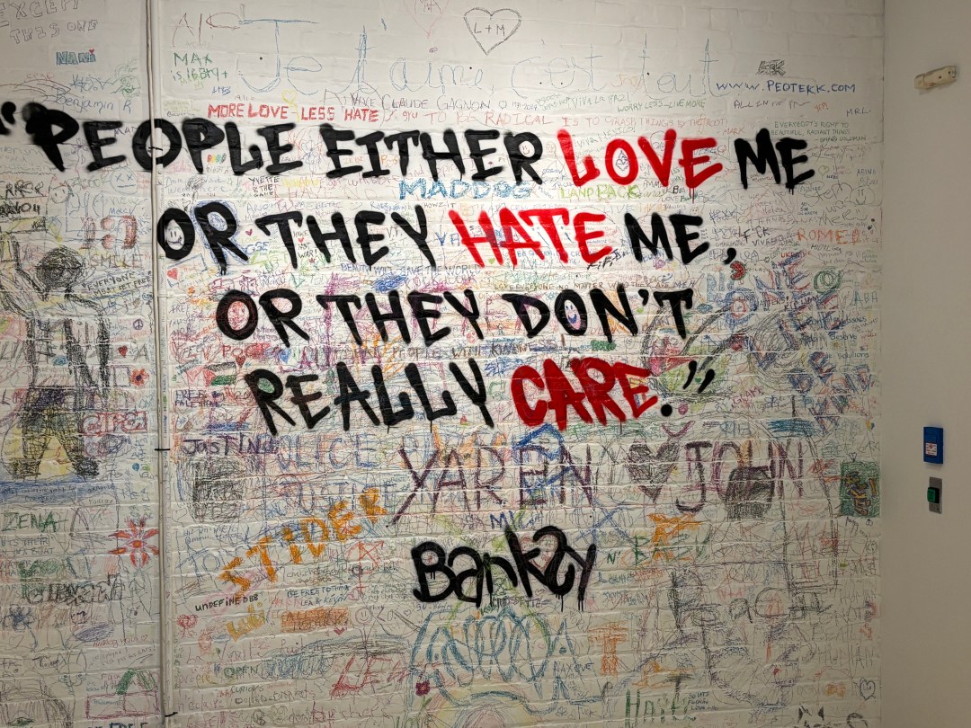Man muss Banksy nicht mögen, aber kennen sollte man ihn schon. Banksy ist ein anonymer britischer Street-Art-Künstler, der weltweit bekannt für seine provokativen, gesellschaftskritischen und oft sarkastischen Kunstwerke ist. Seine Arbeiten tauchen über Nacht an öffentlichen Orten wie Wänden, Straßen oder Brücken auf. Um schnell und präzise zu arbeiten, verwendet Banksy meistens Schablonentechniken.