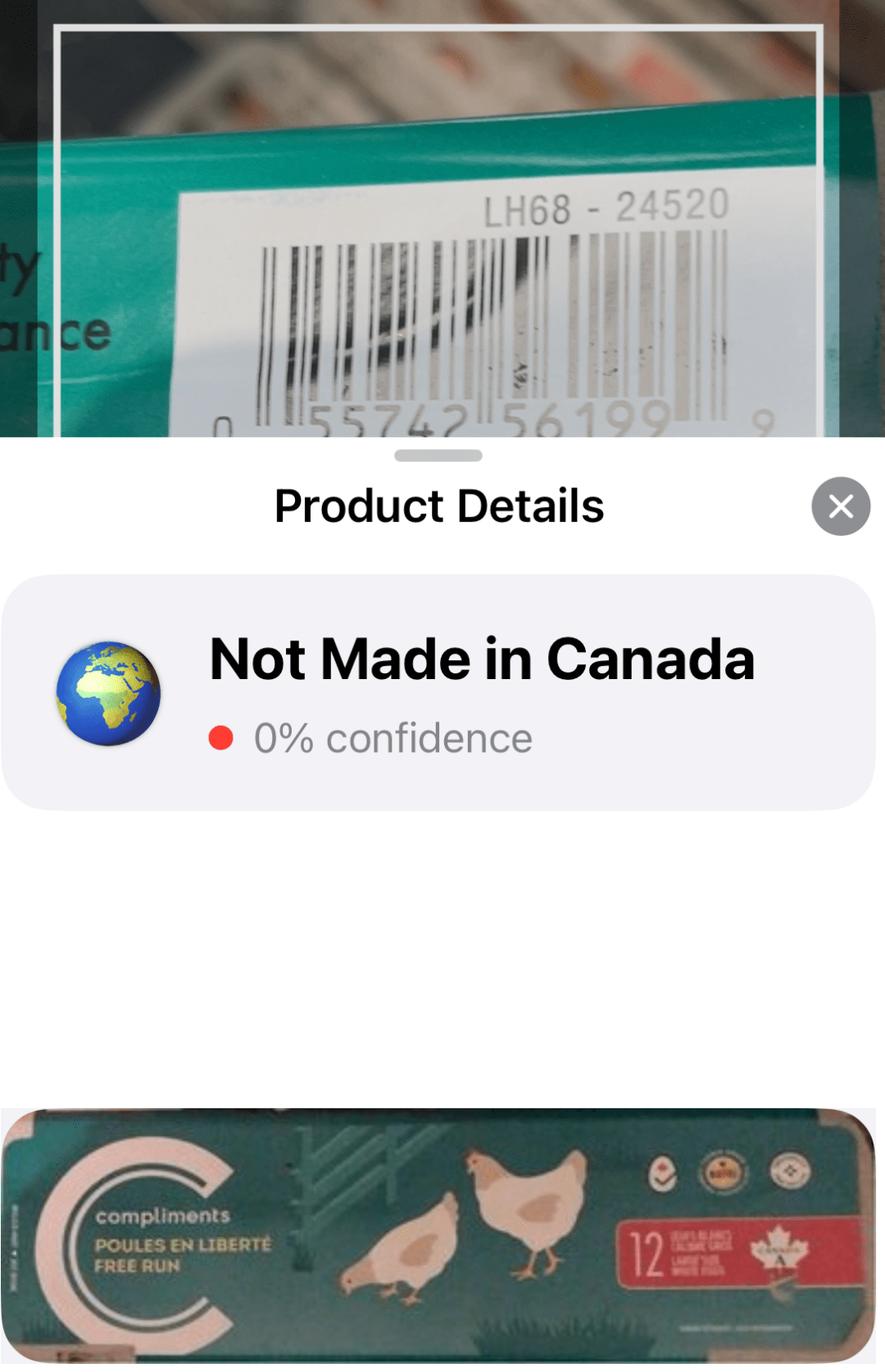Die beiden Apps, mit denen sich kanadische von amerikanischen Produkten unterscheiden lassen, stecken noch in den Kinderschuhen. So wurden eben im Supermarkt Eier von freilaufenden Hühnern fälschlicherweise als „Not made in Canada“ klassifiziert – obwohl sie nachweislich aus der Region stammen.