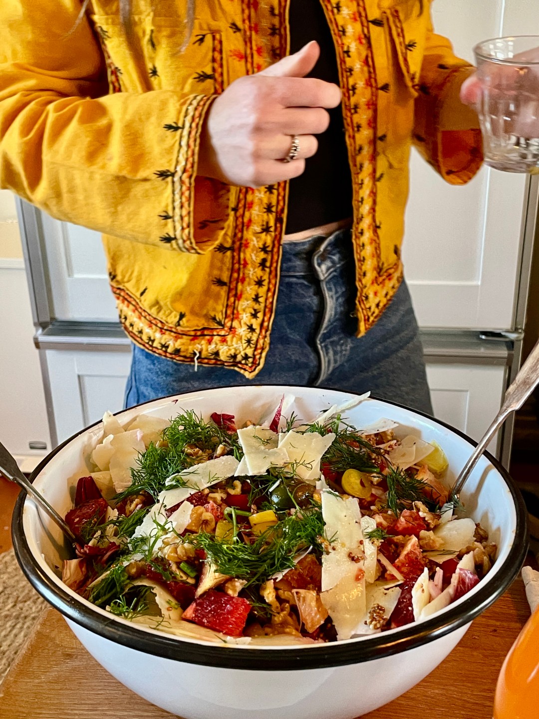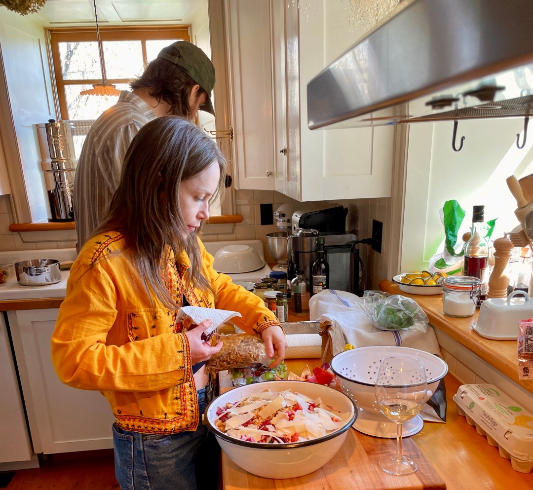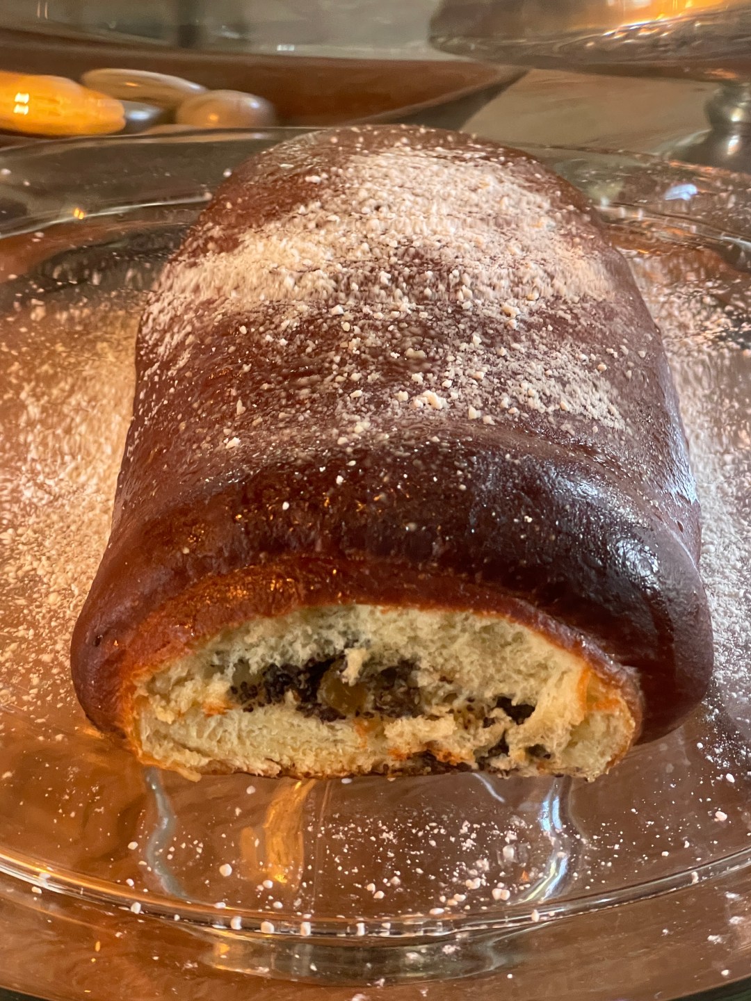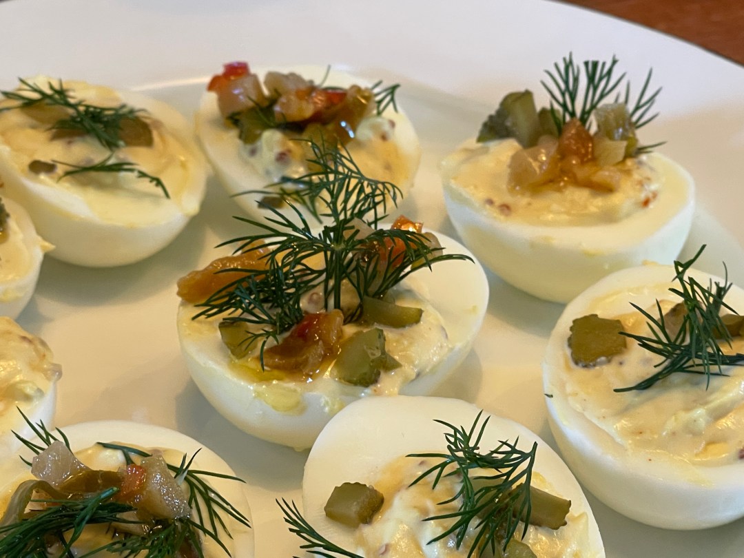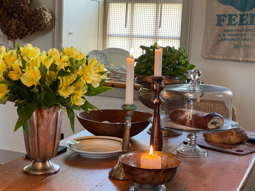 Für’s Hauptgericht ist der Hausherr verantwortlich. Cassians Ofenschinken mit kandierten Ananasscheiben ist bei uns längst Tradition. Dazu gibt’s Lores kreativen Kartoffelsalat, Matts gefüllte „Deviled Eggs“ und Julias Gemüseensemble aus marktfrischen Zutaten. Als Nachtisch werden handverzierte Cookies und Mohnkuchen aus der Stadt serviert.