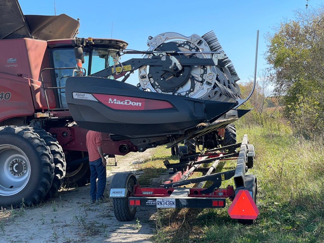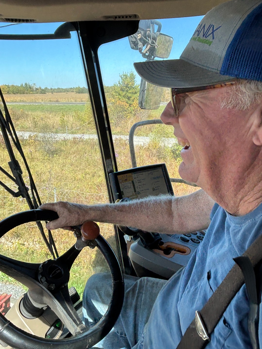 Heute waren die Sojabohnen an der Reihe. „Mäßige Ernte“, grummelt Dennis hinter dem Lenkrad seines Mähdreschers, einer Art Feldfabrik auf Rädern. Mit der linken Hand steuert er das Lenkrad, mit der rechten den Joystick.